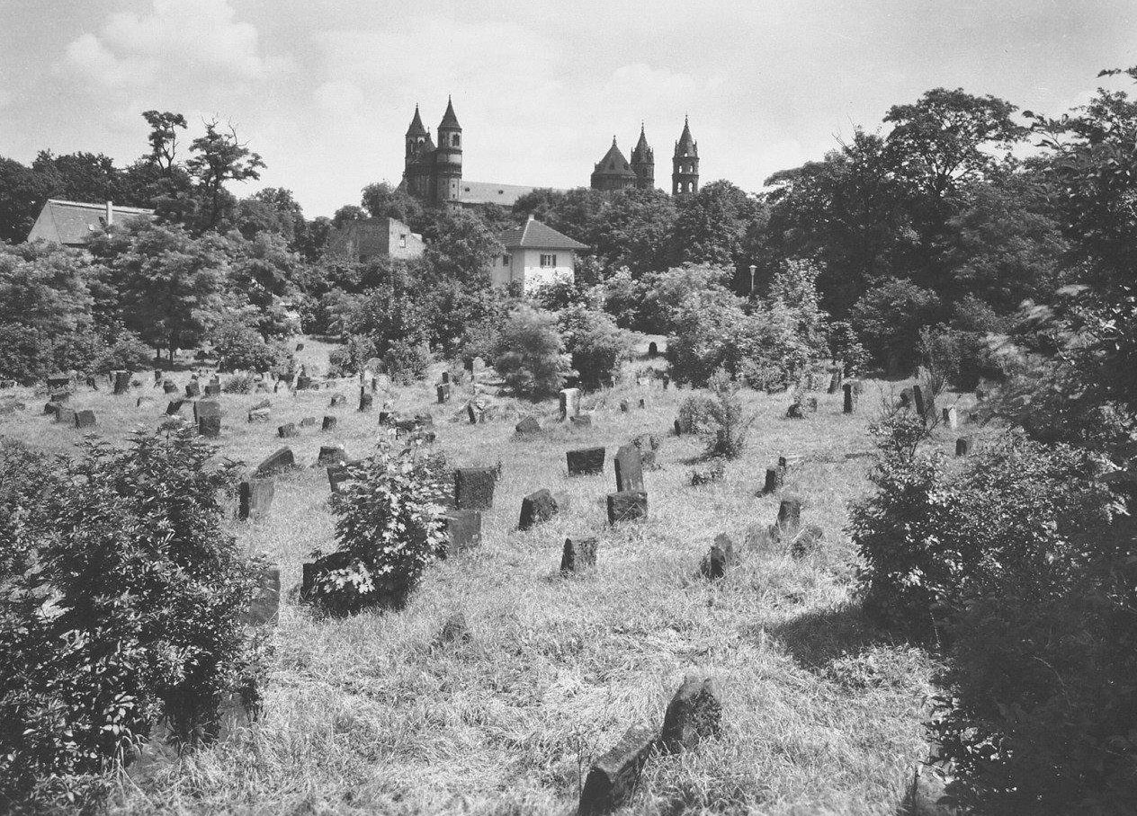 Alter Judenfriedhof, sog. Buber-Blick auf den Wormser Dom, 1965 Foto: Stadtarchiv Worms, Fotoabteilung M 11213 (P6143347)