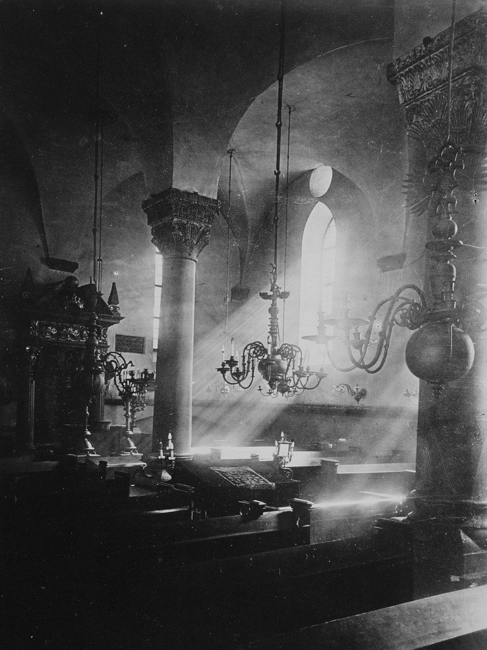 Männersynagoge, Blick vom Eingang zum Thoraschrein über den Almemor hinweg, 1924 Foto: Stadtarchiv Worms, Fotoabteilung 6014b (P6143350)